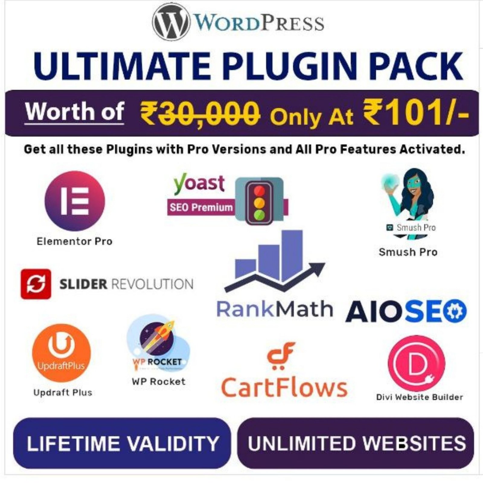 This bundle has all the premium wordpress plugin worth more than 30,000.