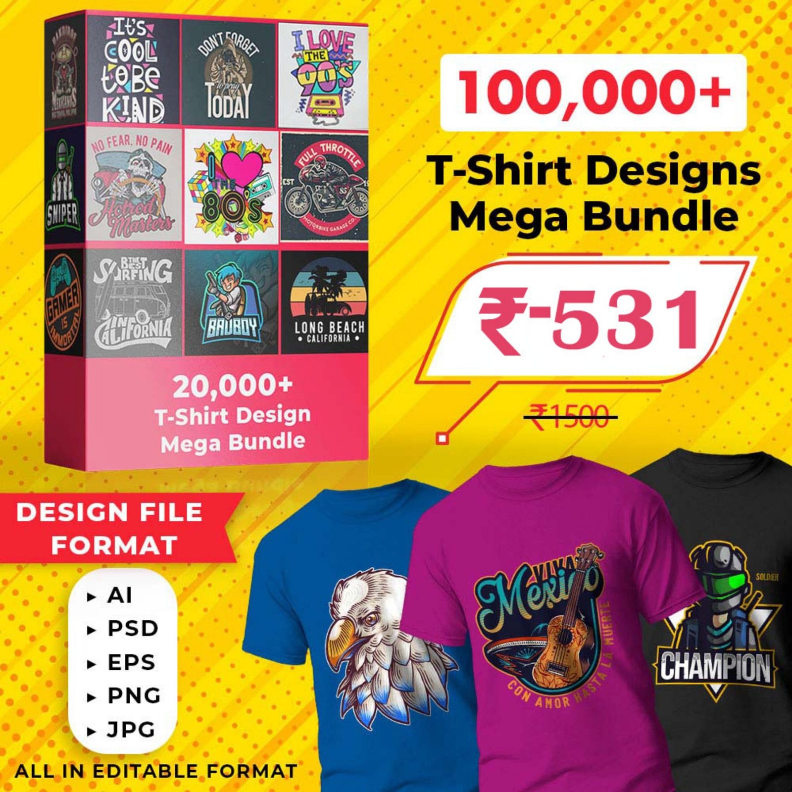 This bundle has Cool and GenZ oriented Tshirt designs which one can print and sell online,