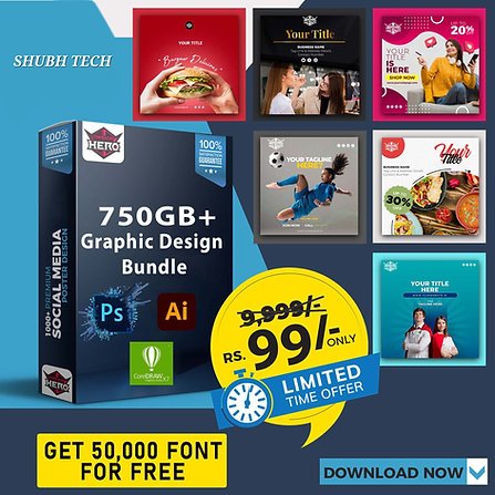 Get this ultimate graphics design bundle which has more than 1 lakh files and more than 749 GB of data.