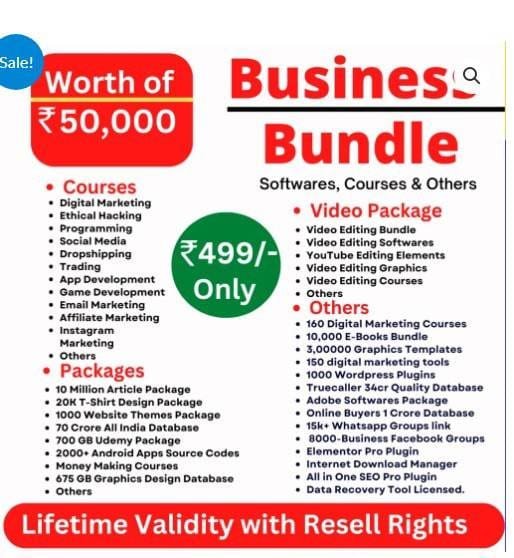 This business bundle has everything you need to start and scale your business. 50,000 worth of tools in just 499, and free in this 999 bundle.