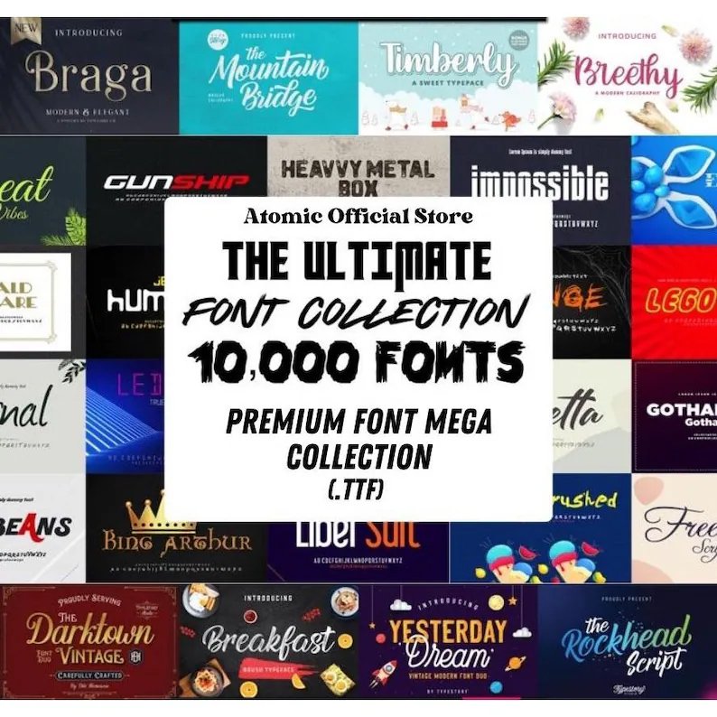 This bundle has 10,000 font that can be used in Photoshop and Illustrator.